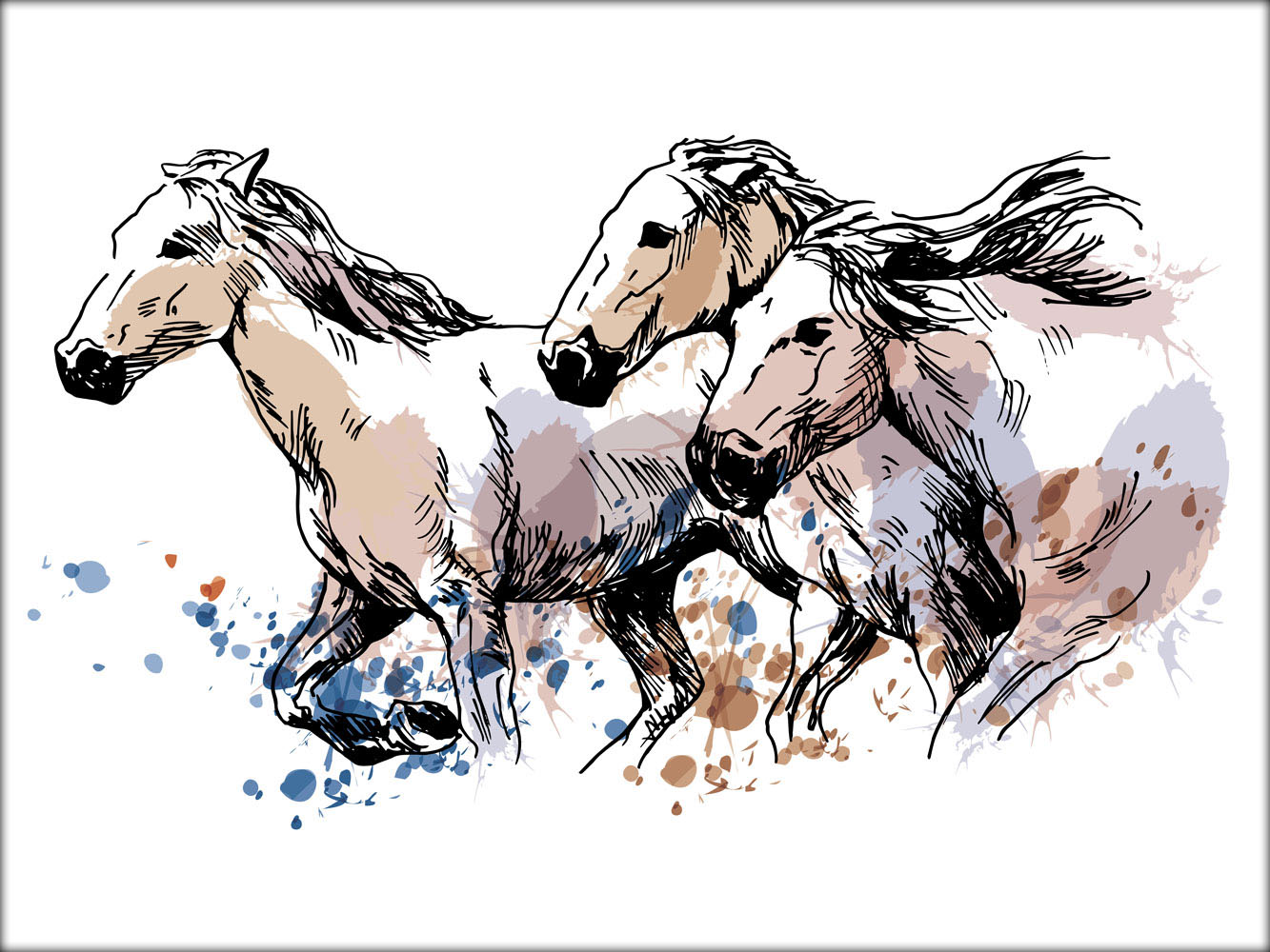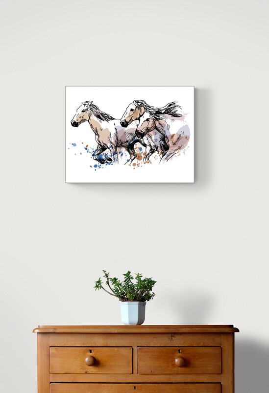 Ilustrace s námětem běžících koní.